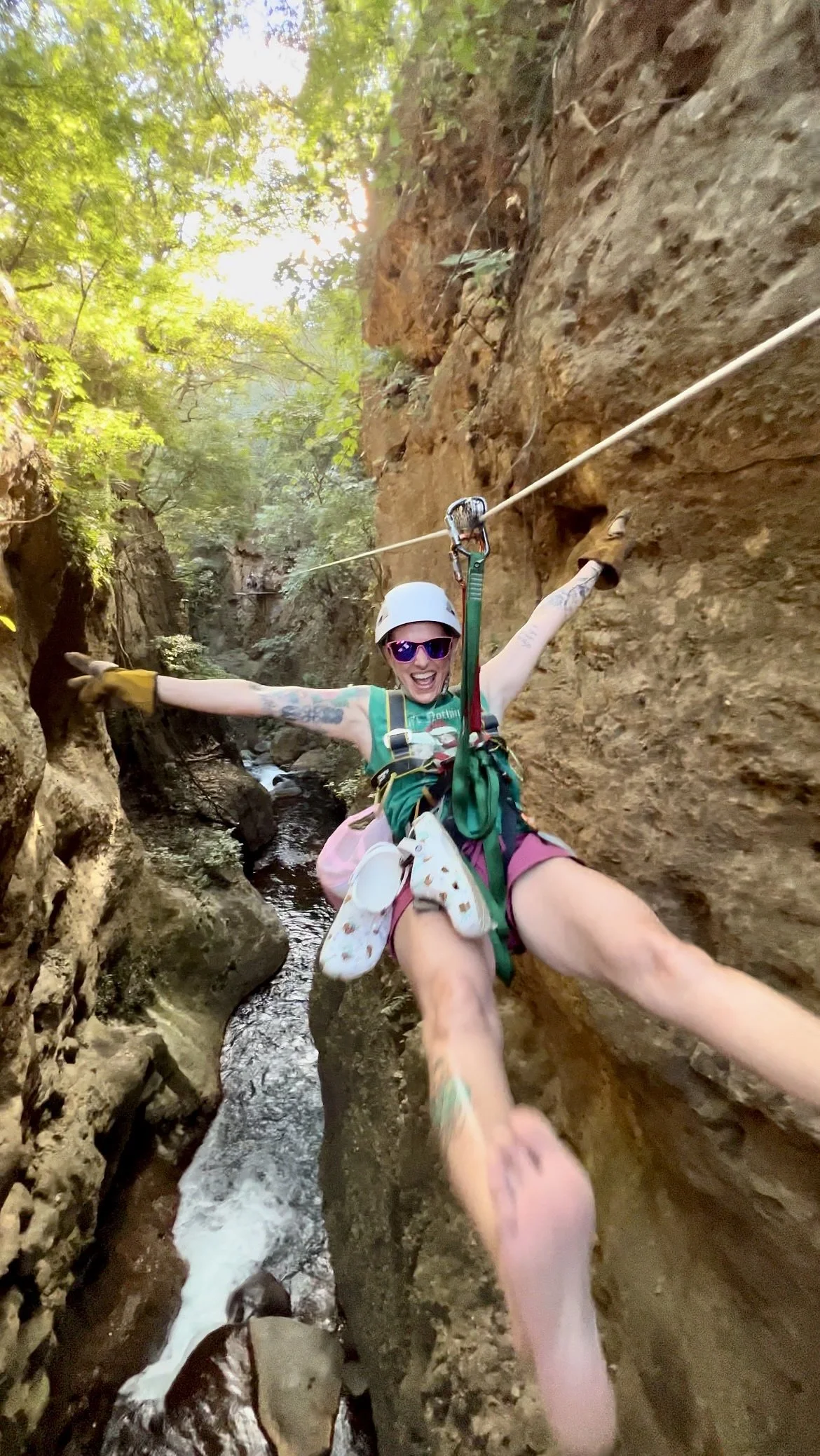 At the top, both hikers and bikers will meet up to swim at the base of a gorgeous waterfall, and take in all of our surroundings. After our swim, enjoy a fun flowy downhill (or casual hike) back to the hotel then head to the restaurant for lunch. The afternoon will be spent on an exciting zipline adventure through the canopy of the rainforest and through a deep canyon.